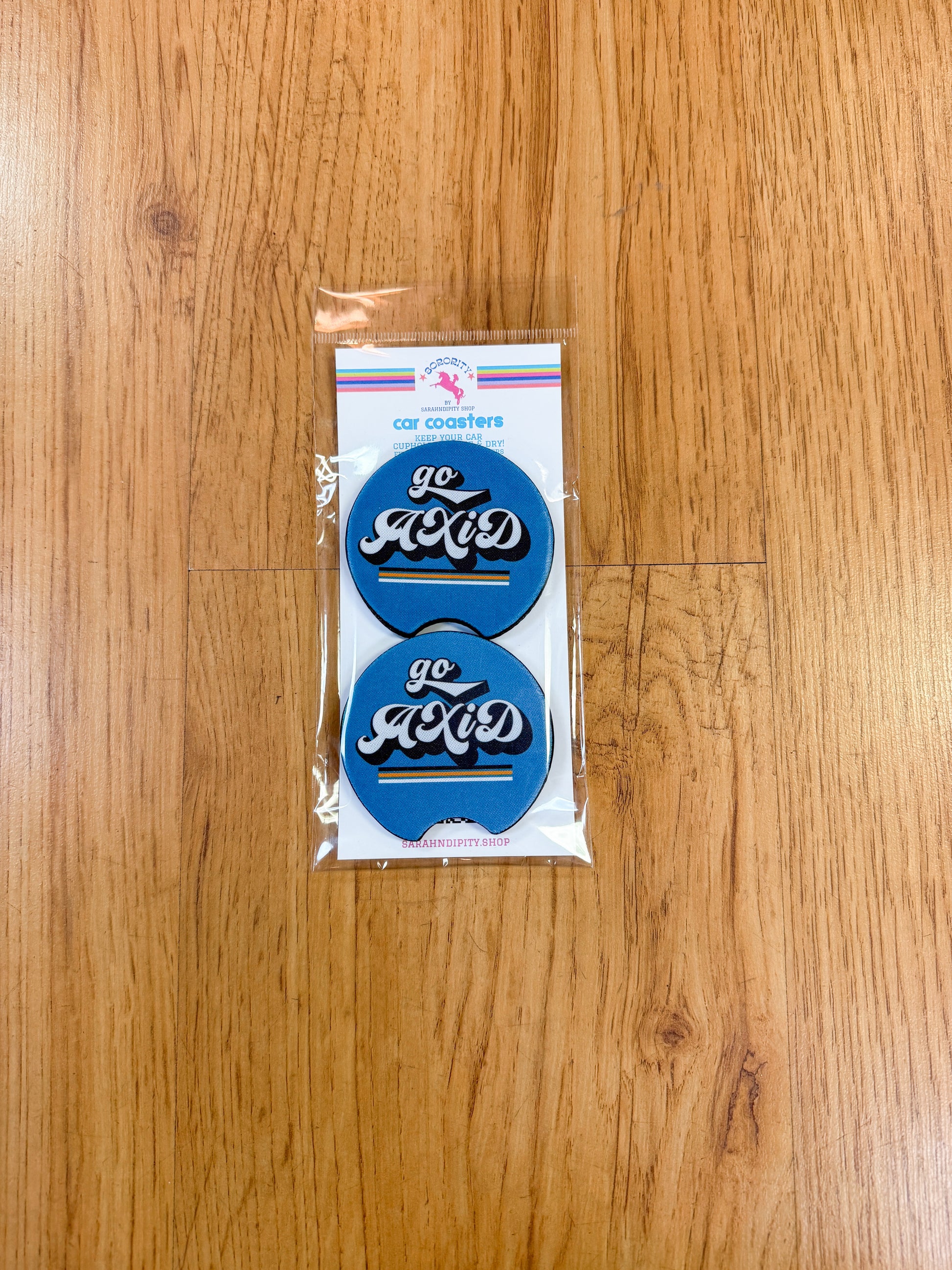 Add some personality to your ride with these sorority car coasters. Made from durable, absorbent material, they keep your cup holders clean by soaking up spills, condensation, and everyday messes. Each coaster features crisp sorority-inspired designs that make your letters stand out wherever you go. They’re easy to remove, easy to clean, and sized to fit most standard cup holders. Perfect for gifts, bid-day baskets, big-little reveals, or treating yourself.